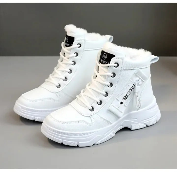 Silné, protiskluzové, teplé dámské sněhule s plochými tkaničkami a silnou fleecovou podšívkou
